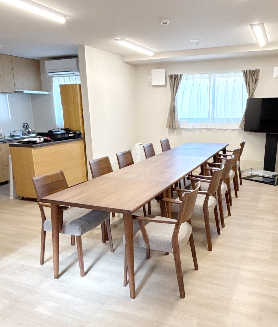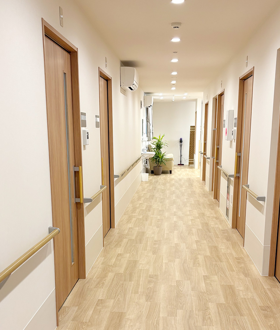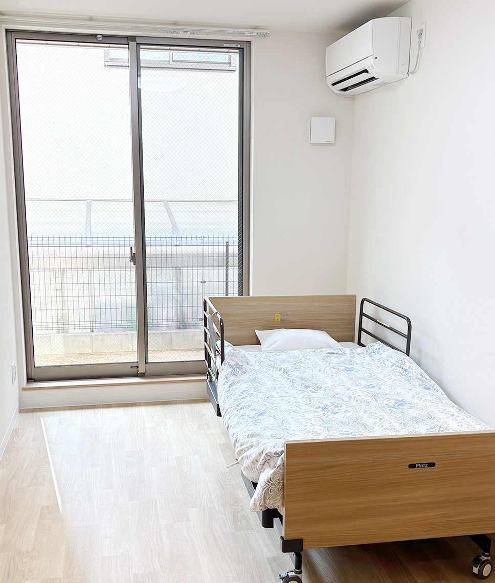 施設紹介 スライドショー 居室について 施設紹介 施設外観 閑静な地にある小規模ホームです。親身に柔軟な対応ができます。 浴室(共用) 個浴でゆっくり入浴していただけます。シャワー浴のみの方も専用チェアがございます。 トイレ(居室内) 緊急コール付きで居室内での急なトラブルも安心です。 居室 車椅子でもご利用いただけ、尊厳とプライバシーを守ります。 スライドショー 居室について 洗面台 クローゼット収納 ベッド 全室共通の設備ですので、ご入居の際の費用や荷物の軽減となります。 トップページ 施設紹介 サービス案内 費用 交通案内